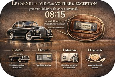 Pour auto, moto et oldtimer, R-TAGS devient un tiers de confiance : plaque scellée, identifiant unique, PV d’installation signé. Chaque scan affiche les preuves : historique, kilométrage/entretien, photos datées, pièces, sinistres, conformité. Résultat : moins de fraude, expertise accélérée, valeur mieux protégée, revente plus sereine. Données partagées au strict nécessaire, accès sécurisé selon les droits.